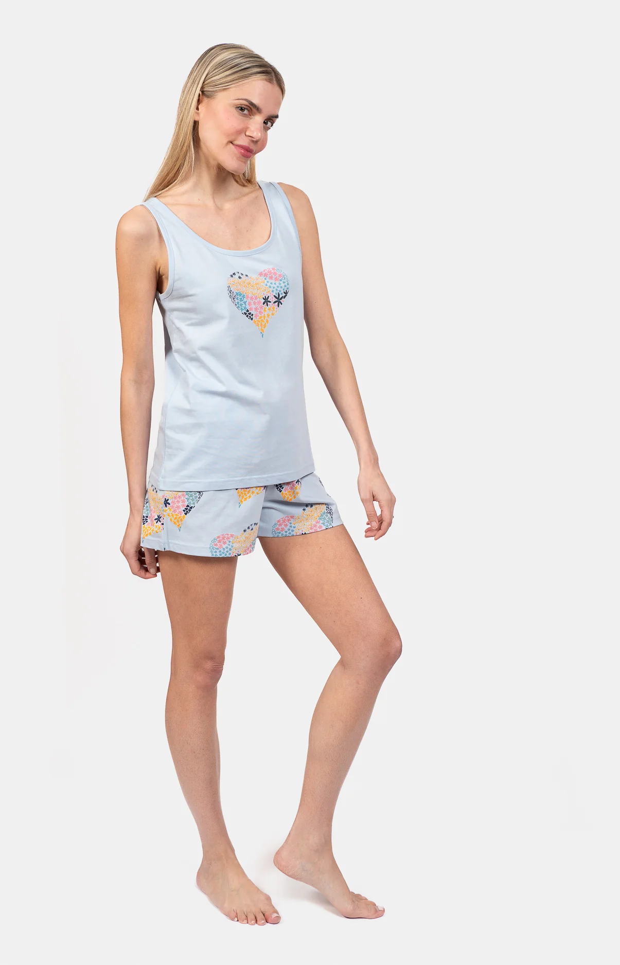 Pyjashort femme 100% coton haut débardeur – FLEUR