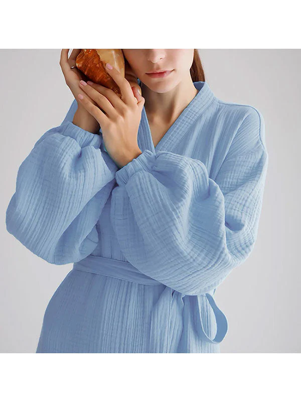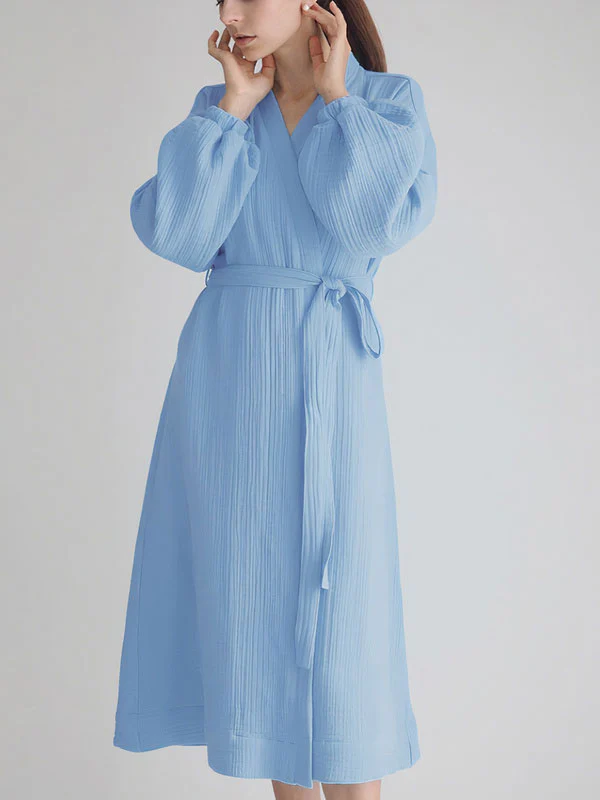 Robe de Chambre en Coton Chaleur Douce Bleu Ciel