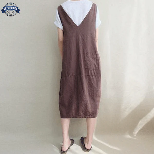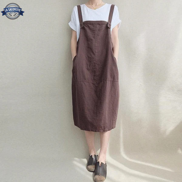 Redécouvre le chic parisien avec la Robe Salopette Coffee Style Tablier 🤎