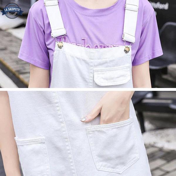 Salopette en Jean Blanc