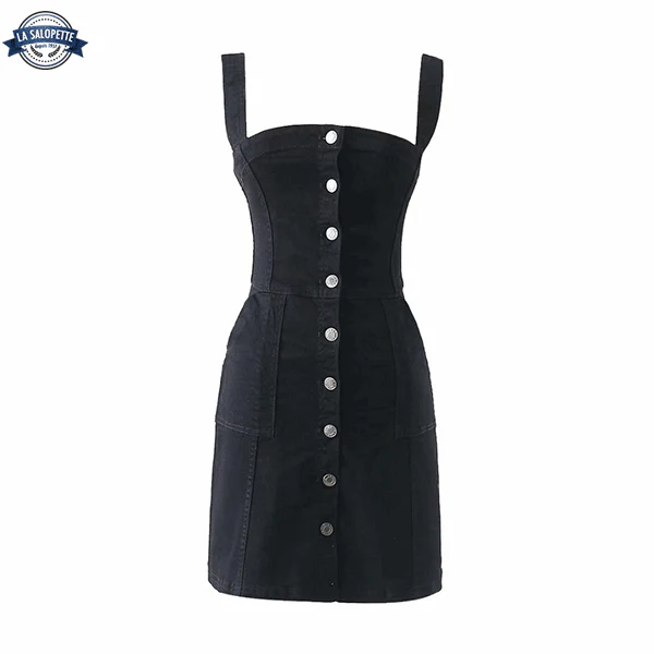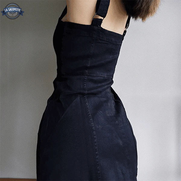 Salut ! Si tu cherches une robe salopette à la fois tendance et confortable pour l’été, tu es exactement la où il faut ! Notre modèle en denim noir est un essentiel à intégrer sans tarder à ta garde-robe estivale. Avec ses bretelles et son dos nu, cette pièce marie astucieusement le charme sensuel et le relax d’une tenue idéale pour les chaudes journées. 🌞