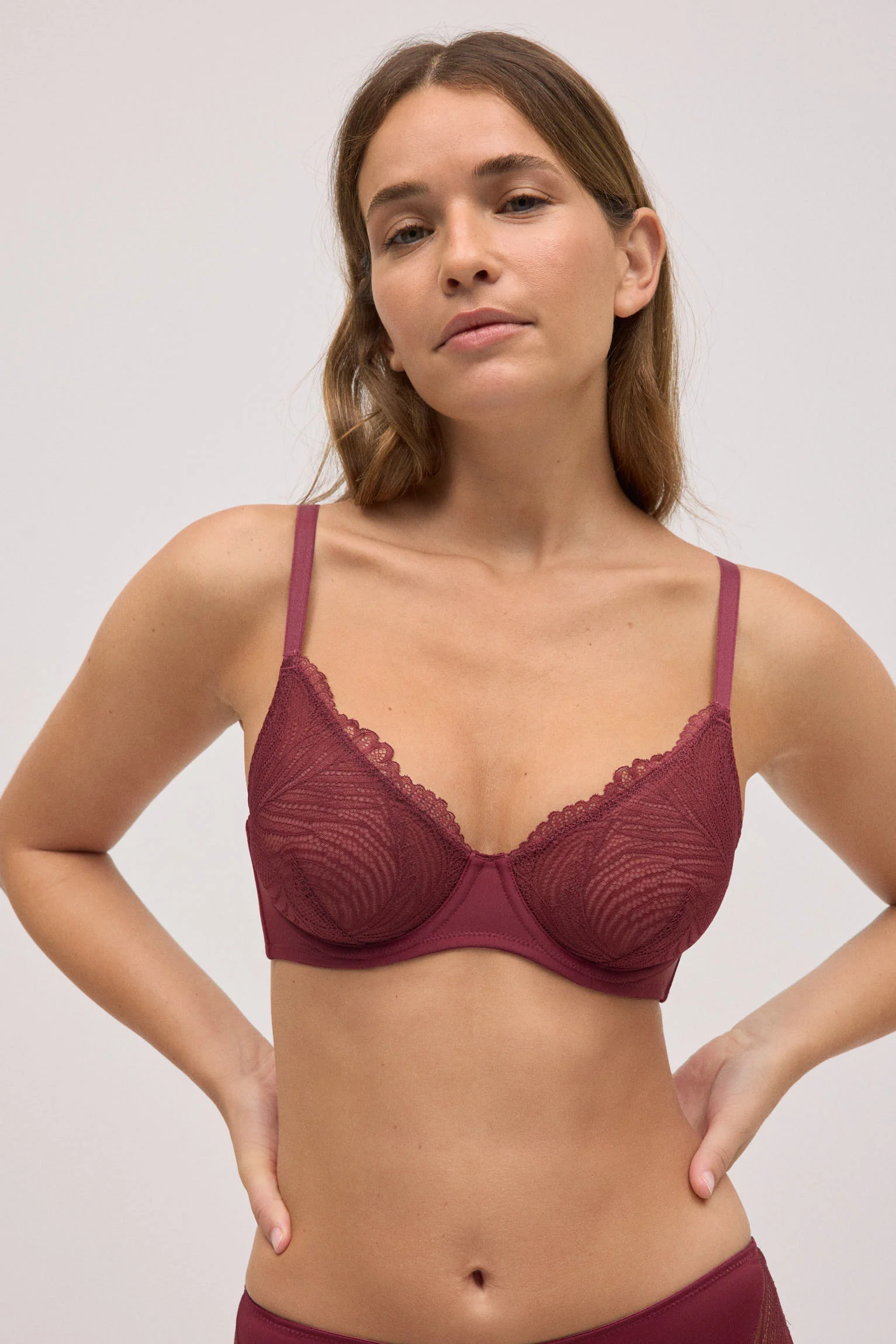 Soutien-gorge à armatures non rembourré en dentelle grenat, bonnets B et C