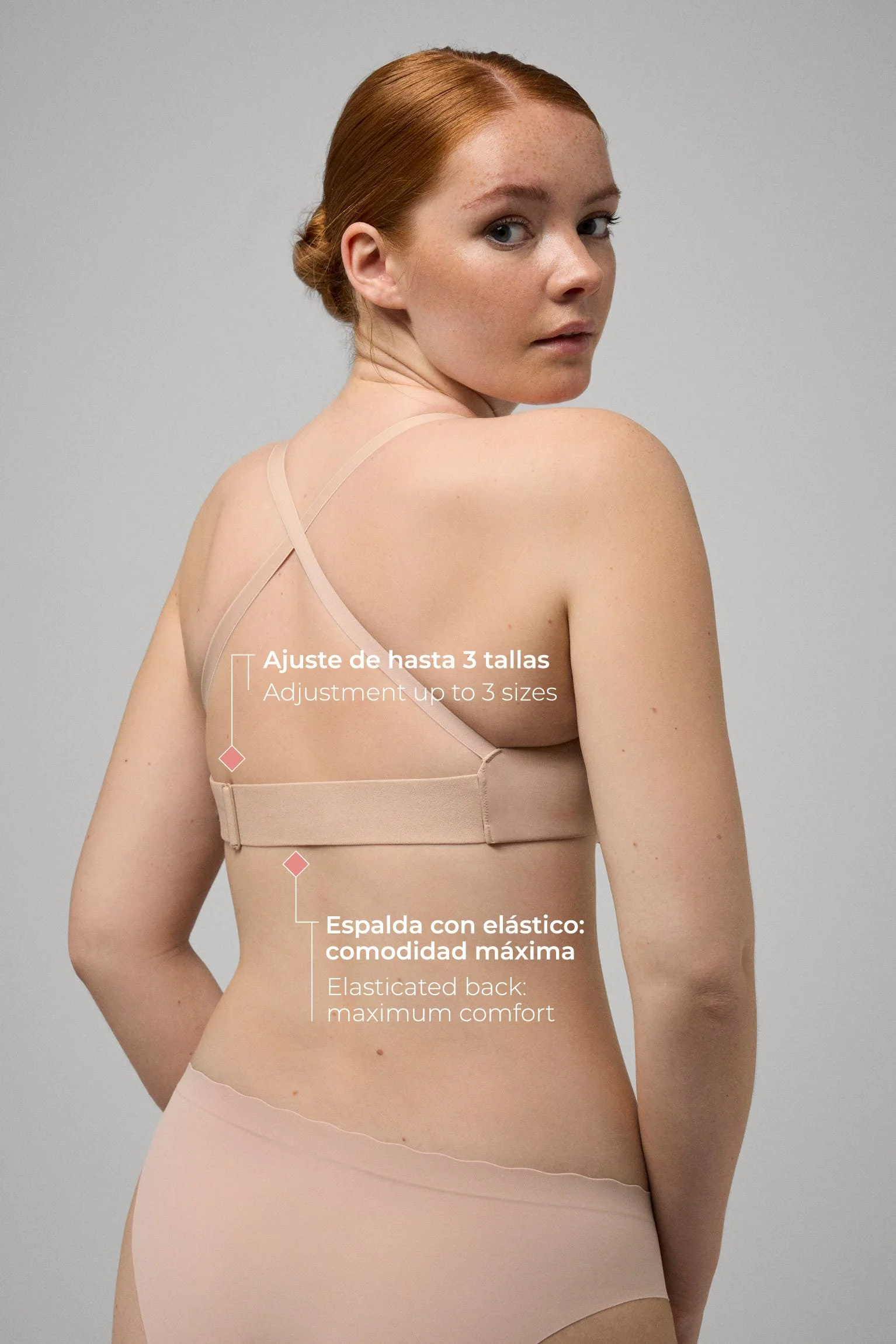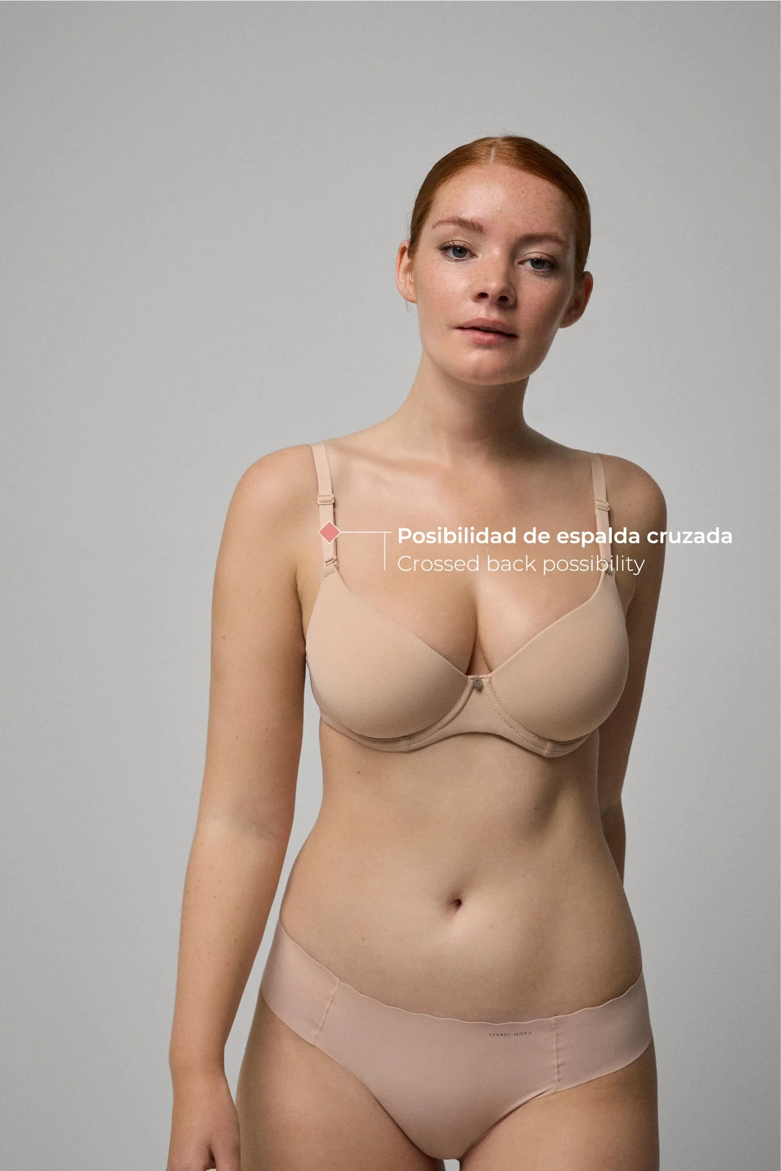 Idéal pour celles qui recherchent un soutien-gorge pratique, doux au toucher et avec une coupe qui accompagne chaque mouvement. Son design minimaliste de couleur nude en fait un basique indispensable en toute occasion.