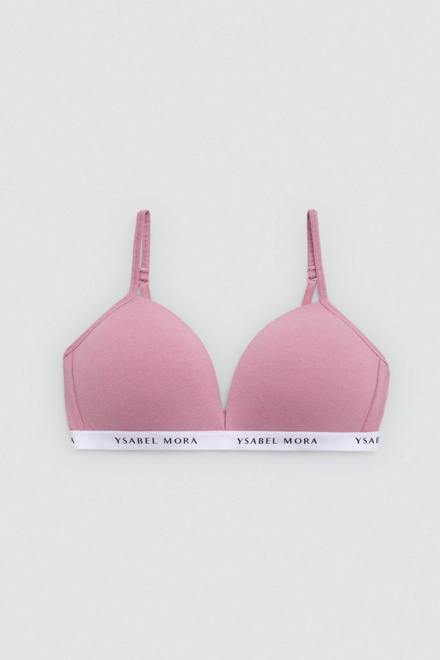 Soutien-gorge rose sans armatures en coton pour jeunes.