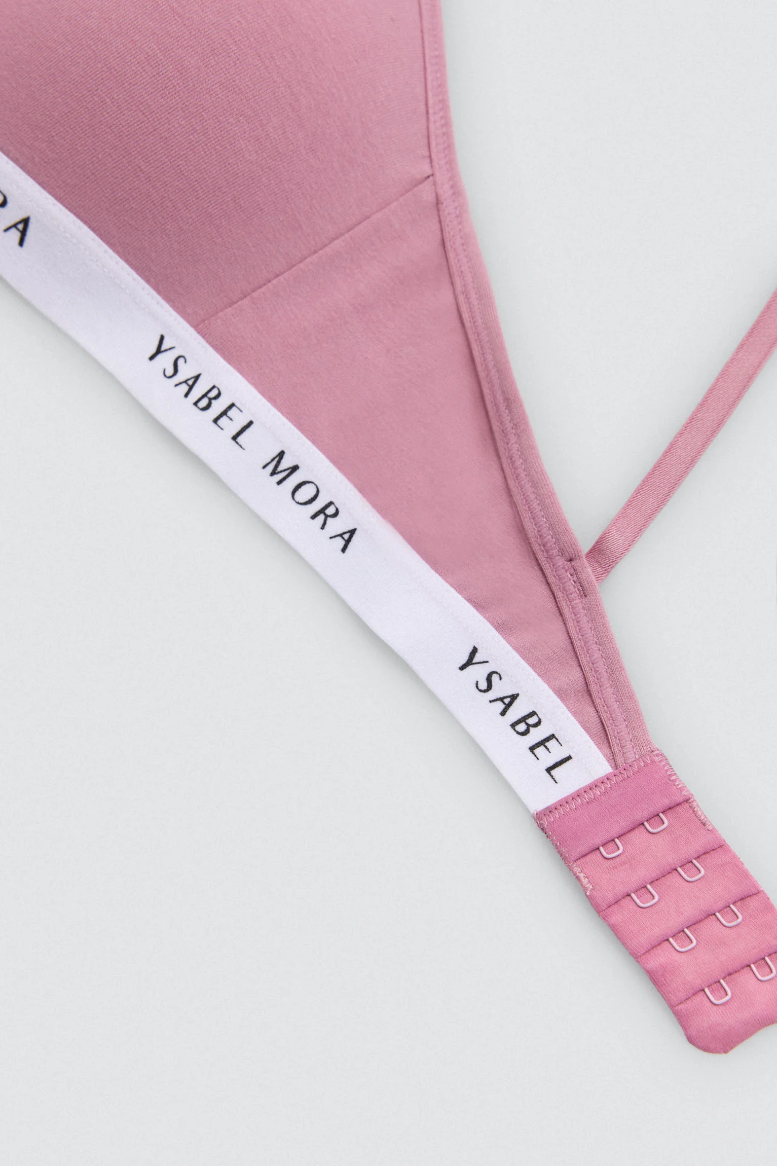 Soutien-gorge rose sans armatures en coton pour jeunes. 95 % coton, 5 % élasthanne