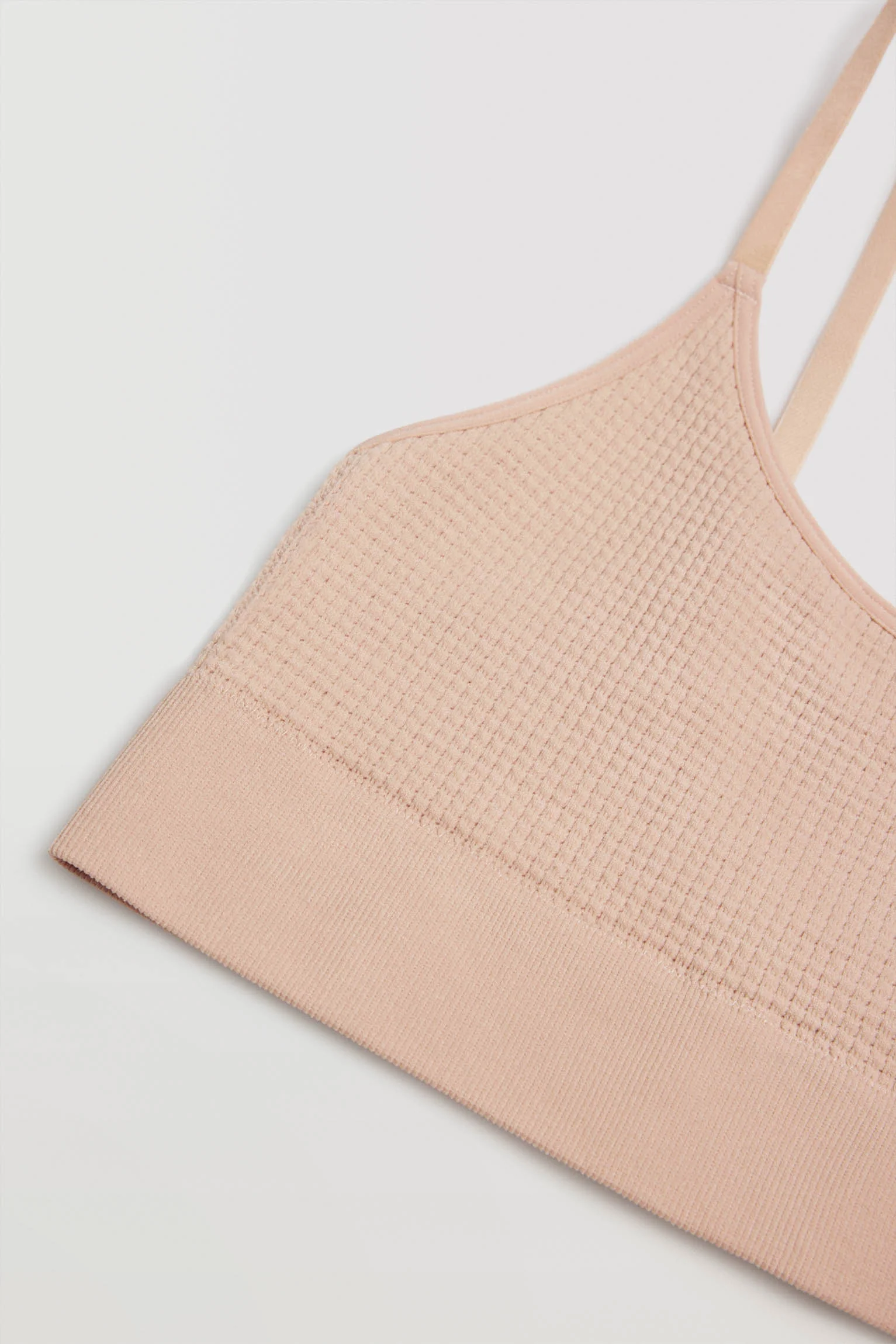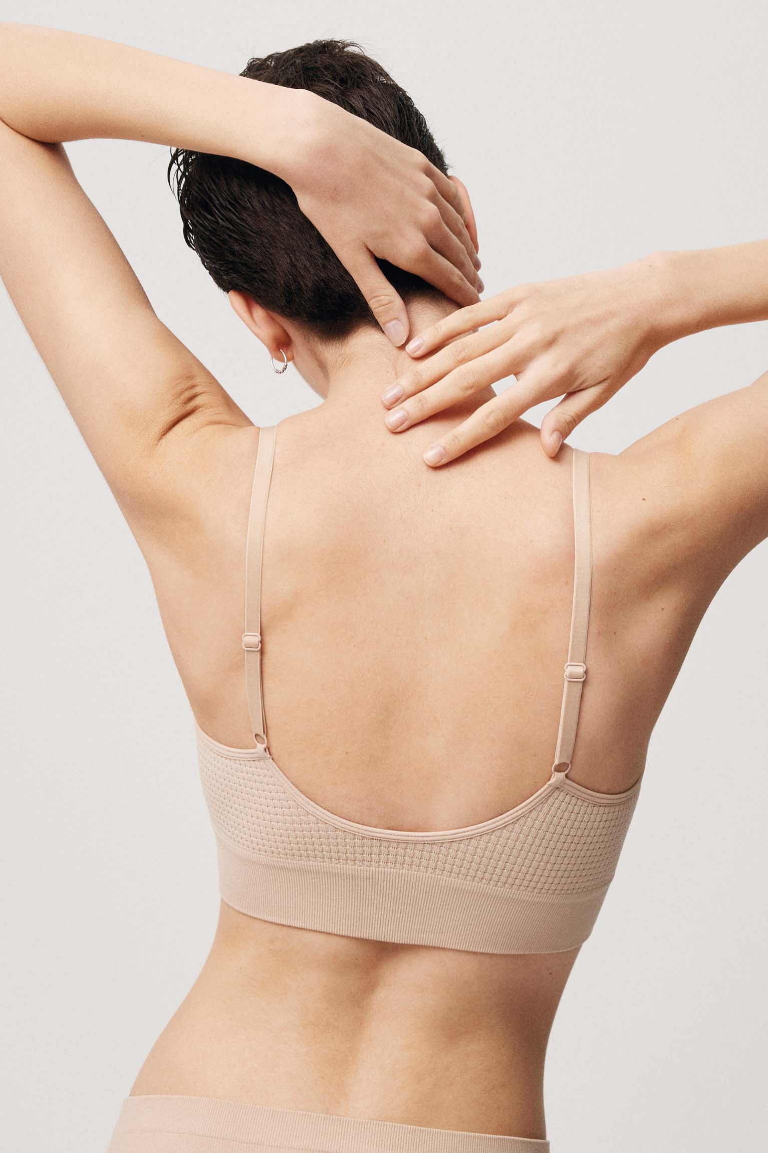 Soutien-gorge type haut sans armatures ni coutures. Couleur nue. Fonctionnalités