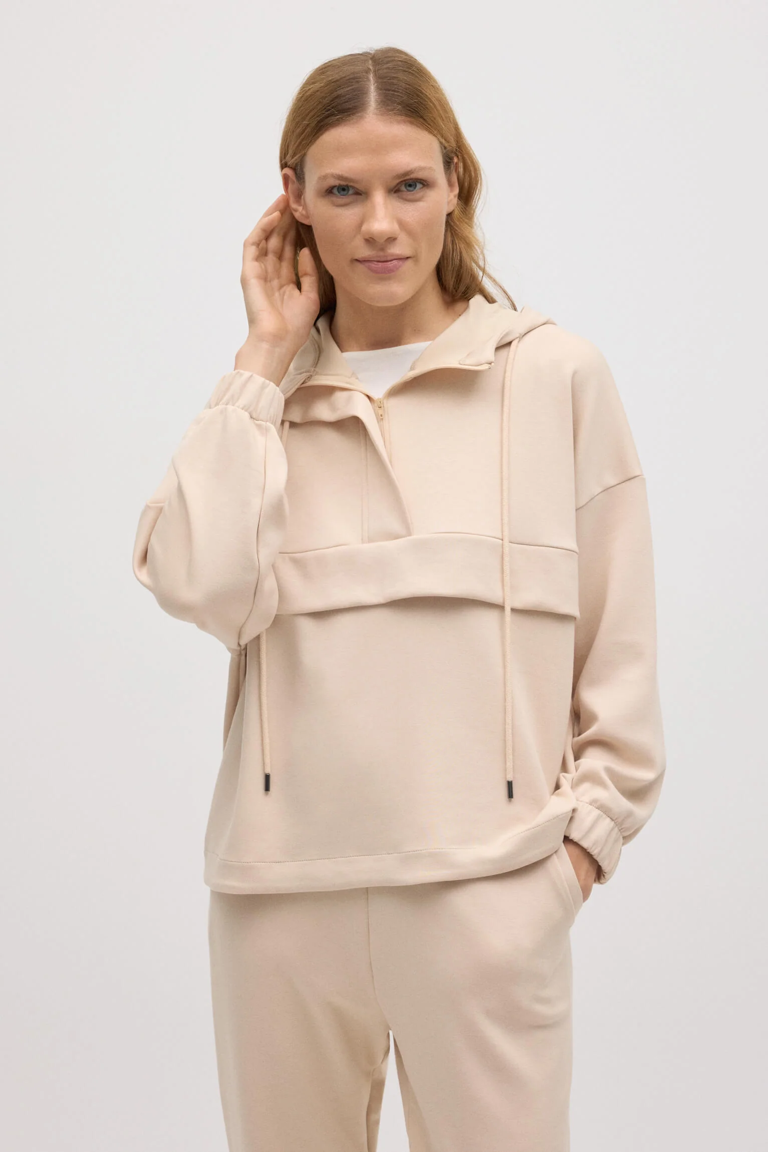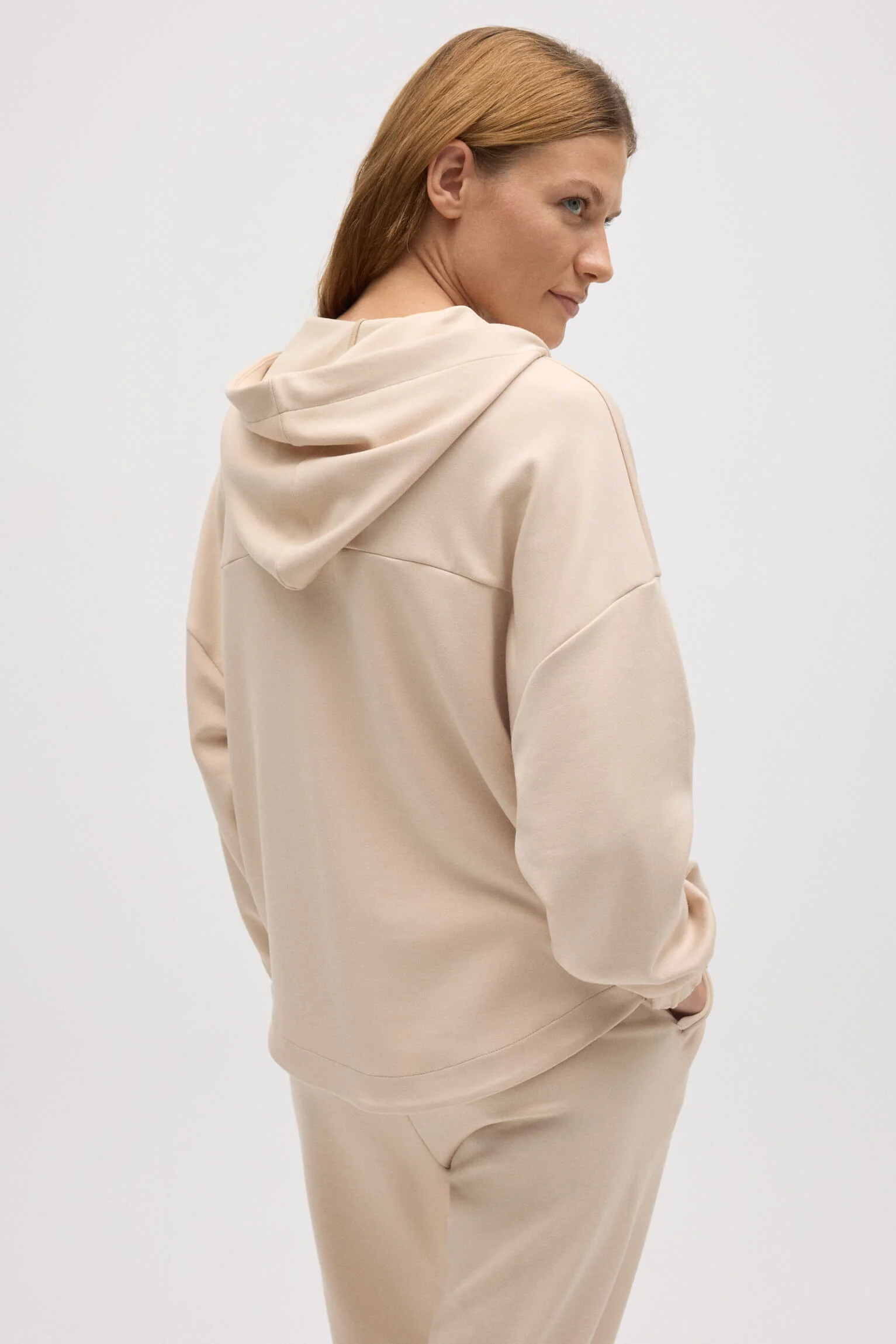 Ce sweat à capuche fluide est un incontournable pour les journées où vous recherchez confort et style. Son tissu doux et léger vous offrira un confort optimal tout au long de la journée, tandis que sa coupe fluide et sa capuche ajustable offrent une touche de confort idéale. Associez-le au pantalon assorti ou à toute autre pièce pour un look confortable et moderne.