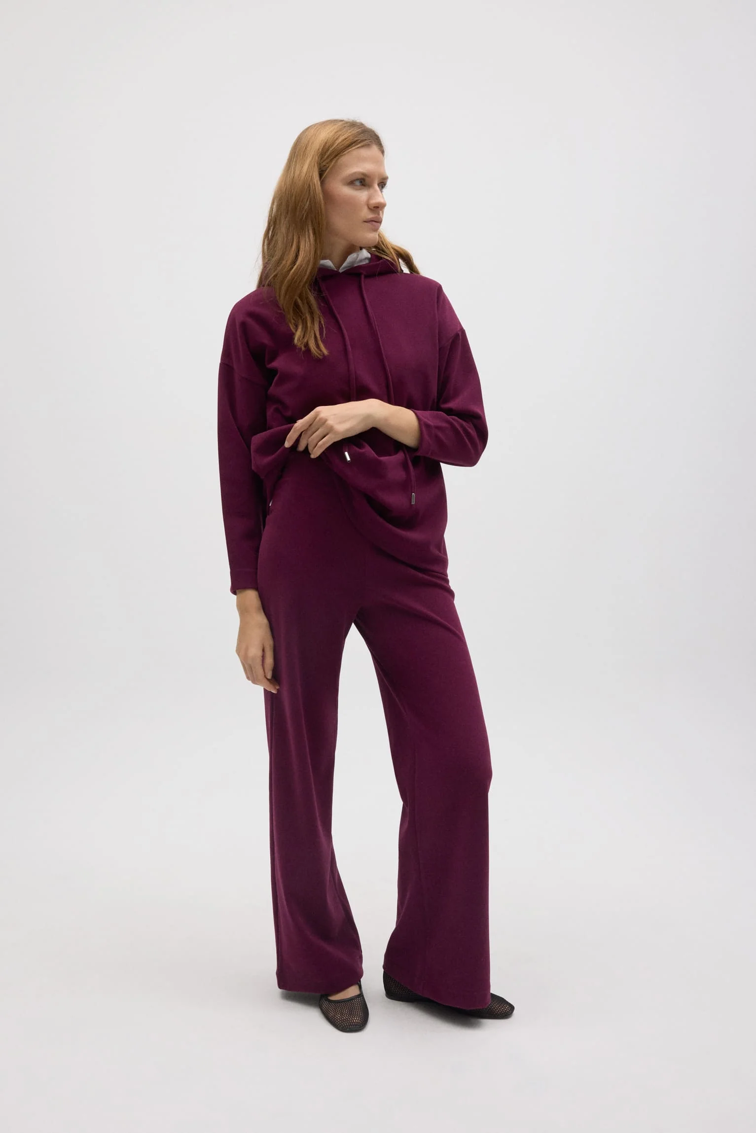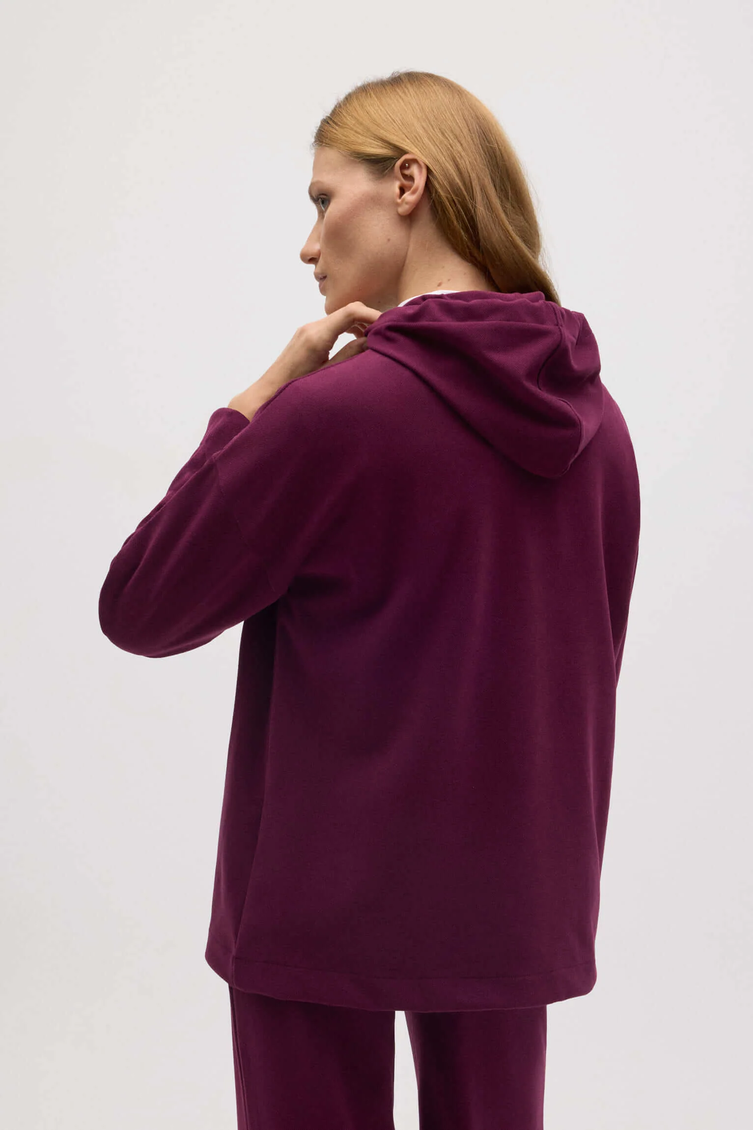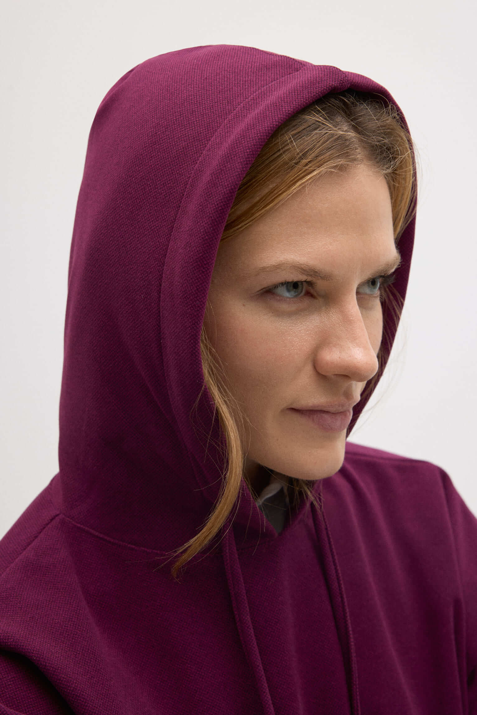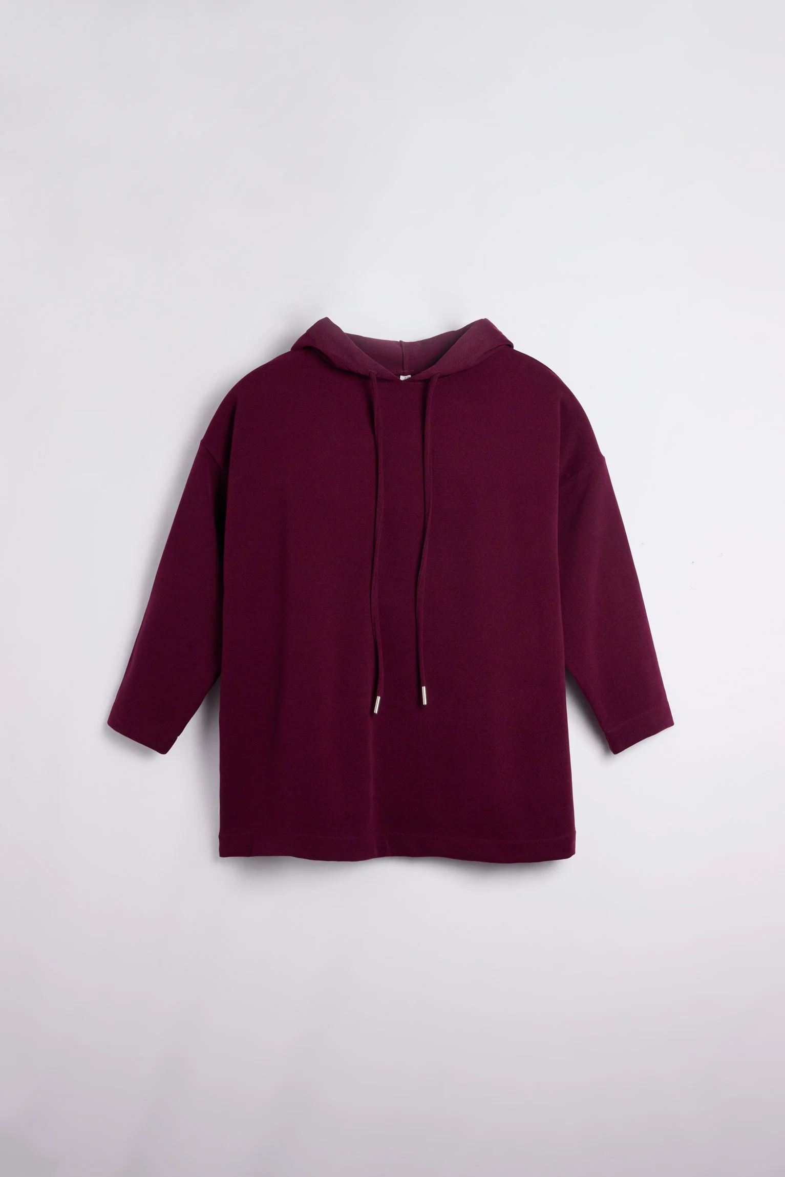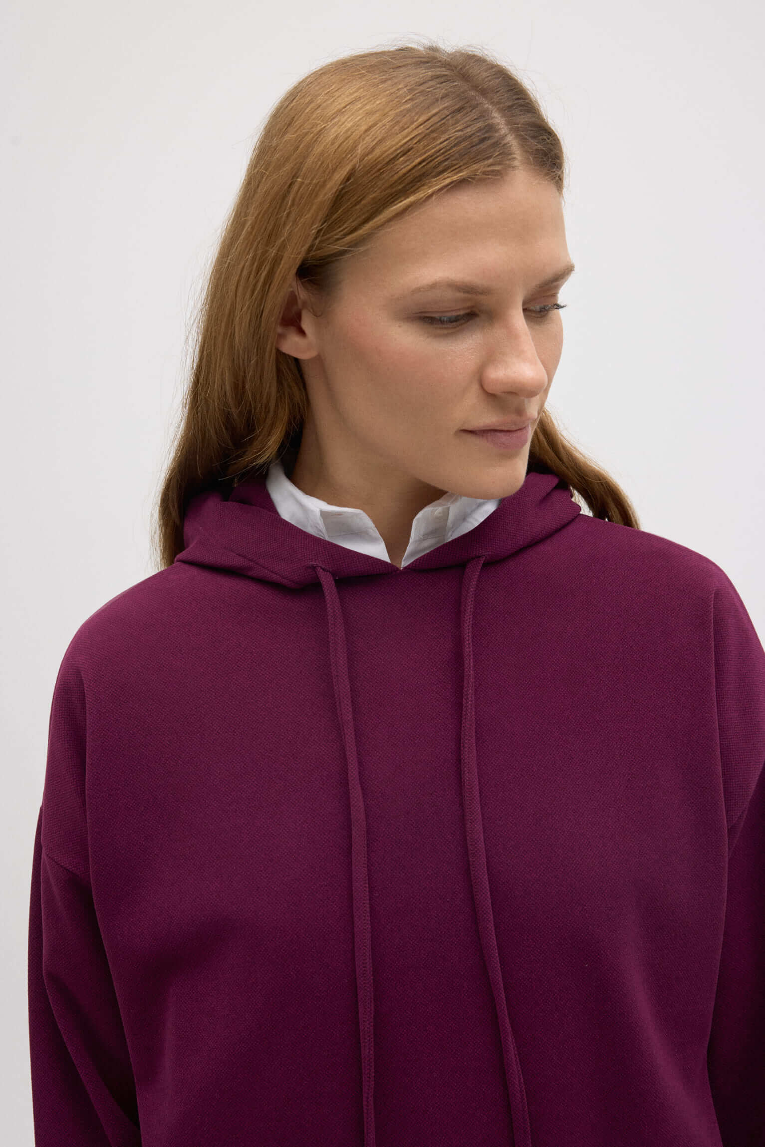 Sweat-shirt à capuche ajustable texturé bordeaux chaud