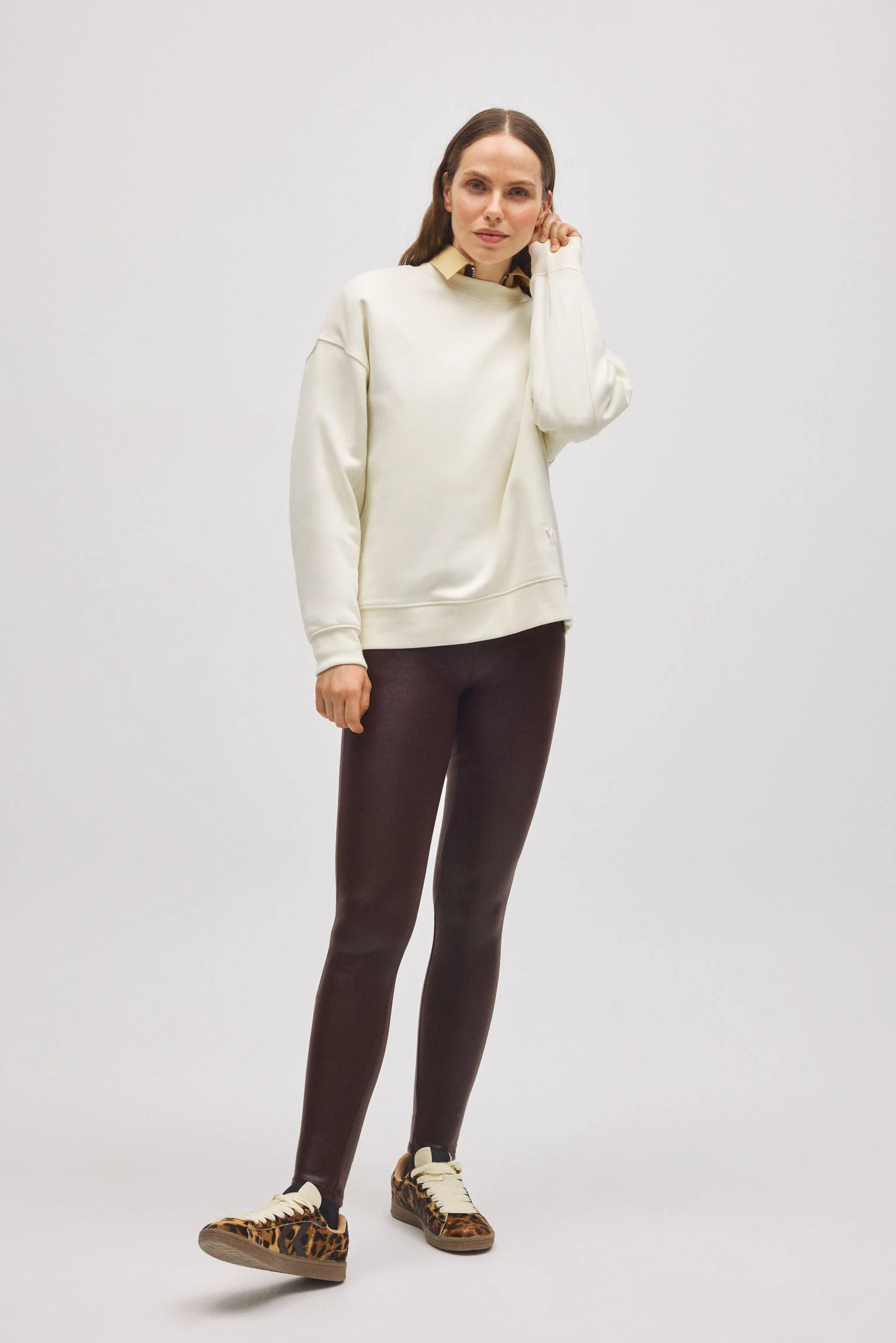 Sweat-shirt à col rond avec intérieur en polaire ivoire
