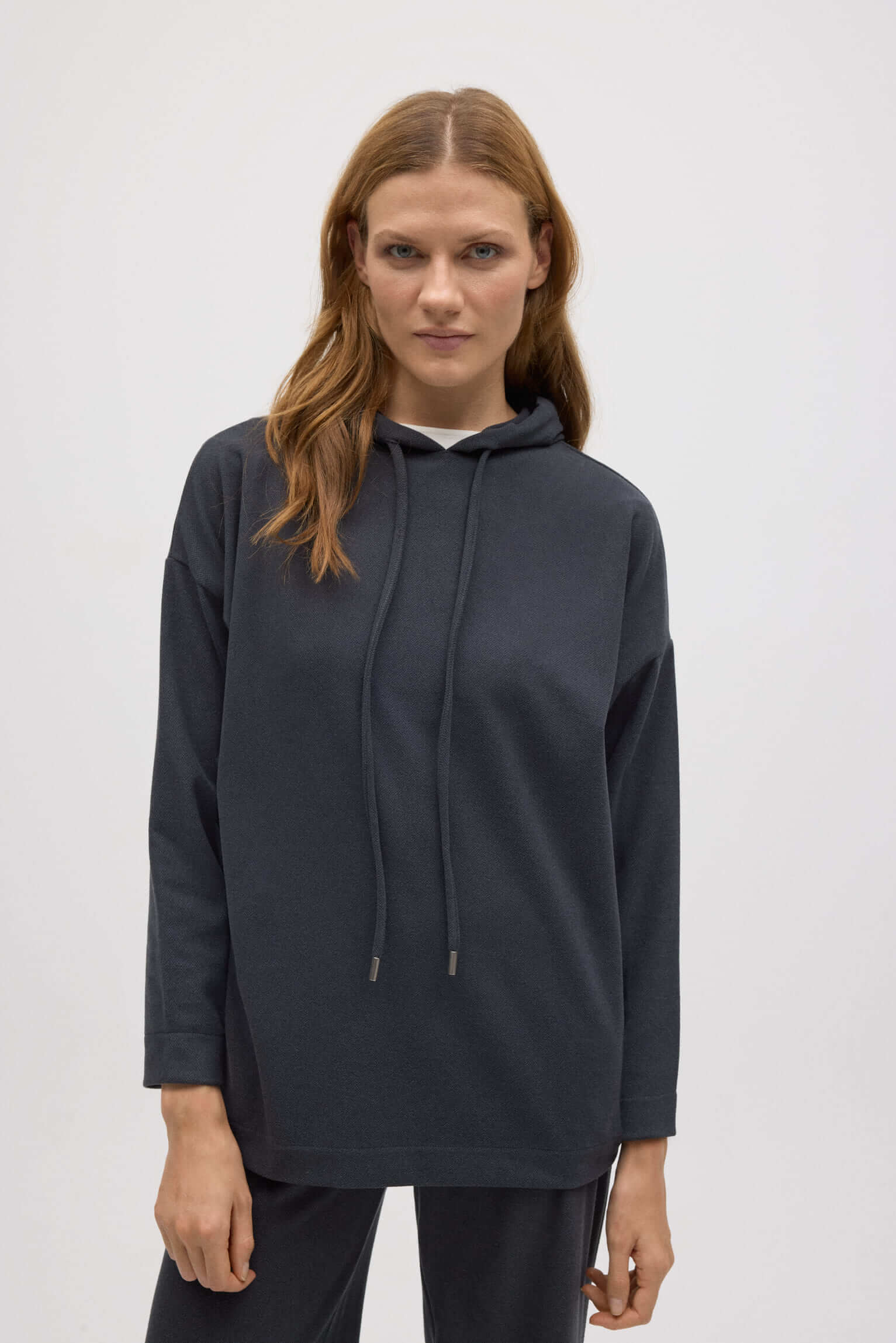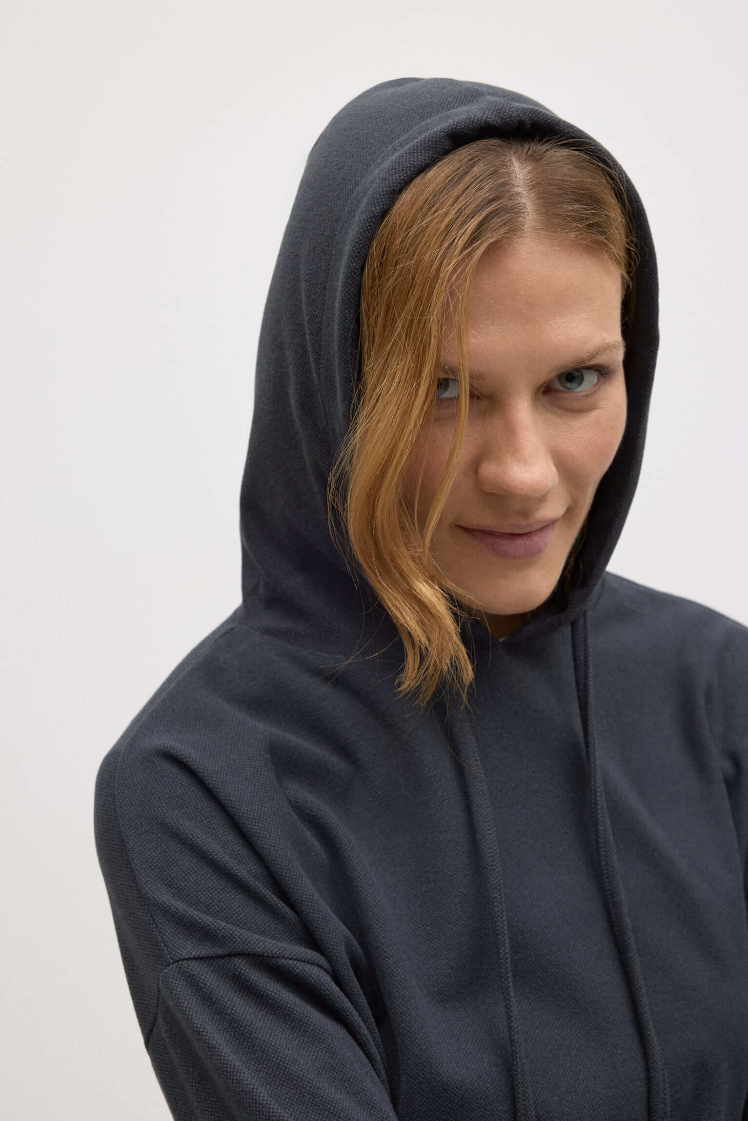 Sweat-shirt chaud avec capuche ajustable et texture anthracite
