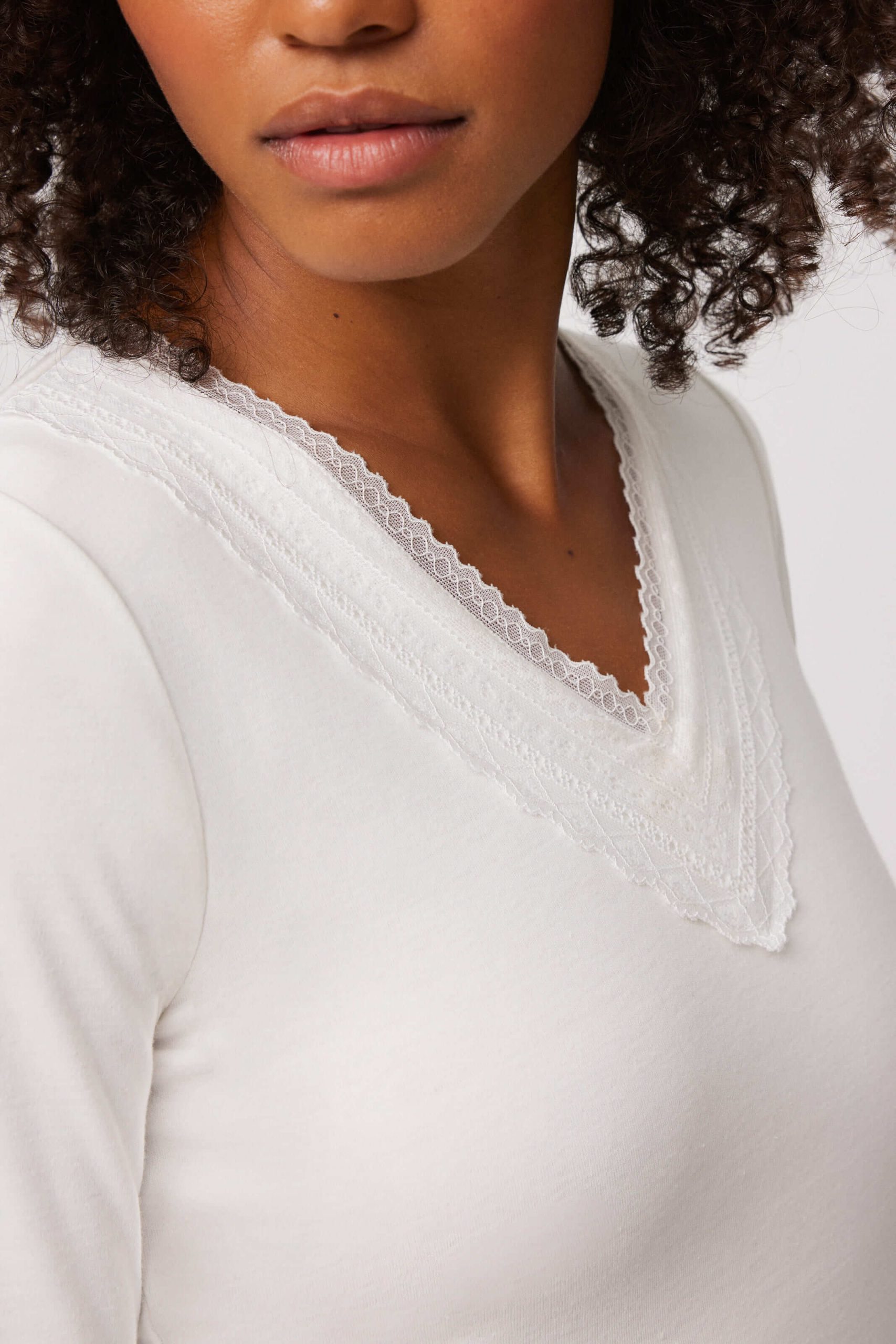 Découvrez le confort absolu avec ce t-shirt chaud en coton naturel pour femme. Conçu avec des manches longues et un élégant col en V, ce vêtement deviendra votre meilleur allié pour lutter contre le froid hivernal. Son tissu intérieur moelleux offre une expérience chaleureuse et confortable, aidant à retenir la chaleur corporelle même pendant les jours les plus froids.