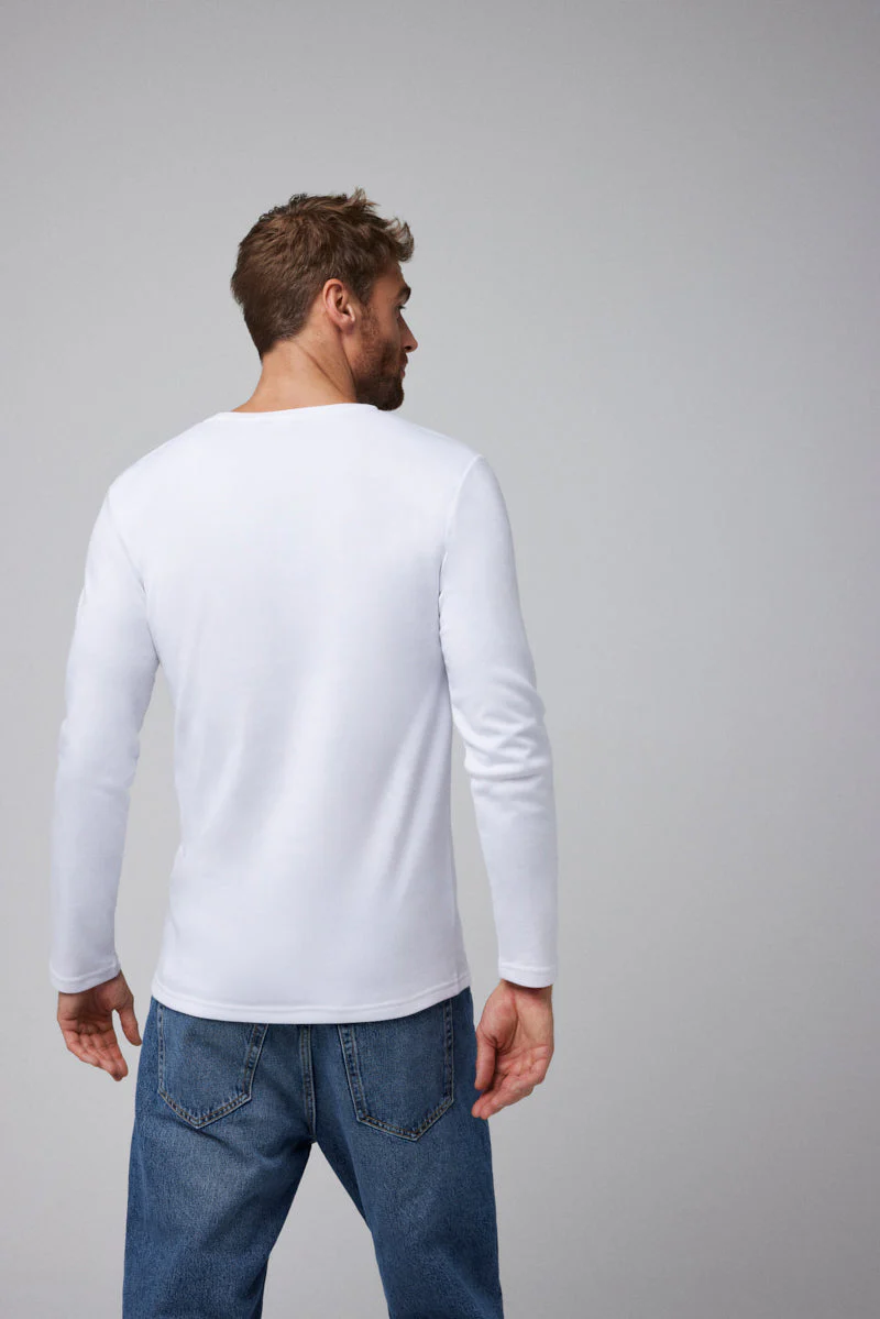 T-shirt blanc à manches longues en coton chaud