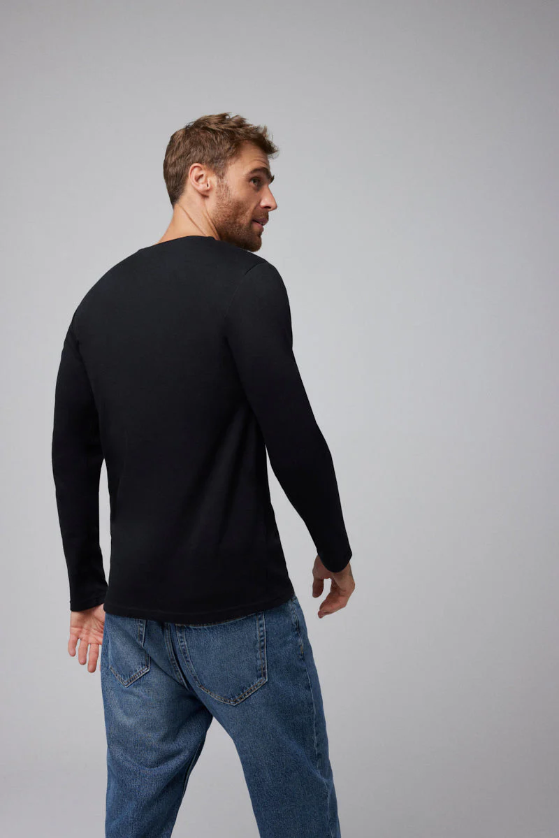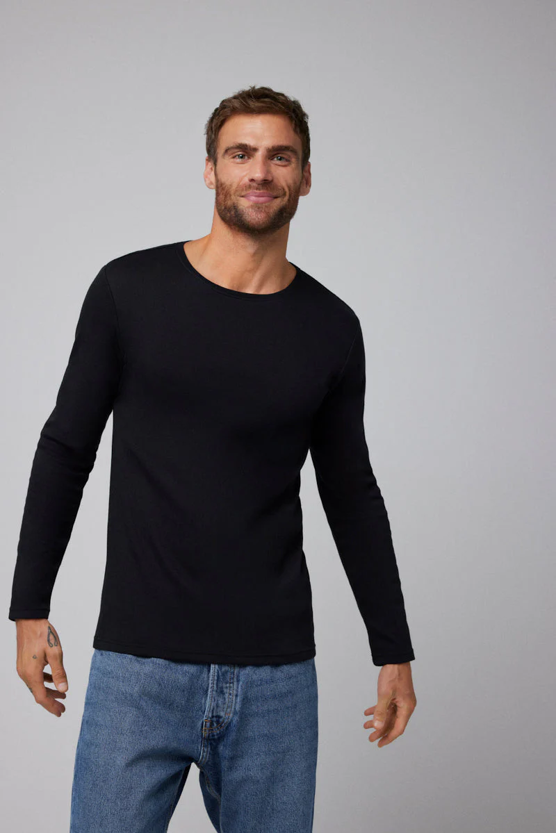 T-shirt chaud en coton noir à manches longues