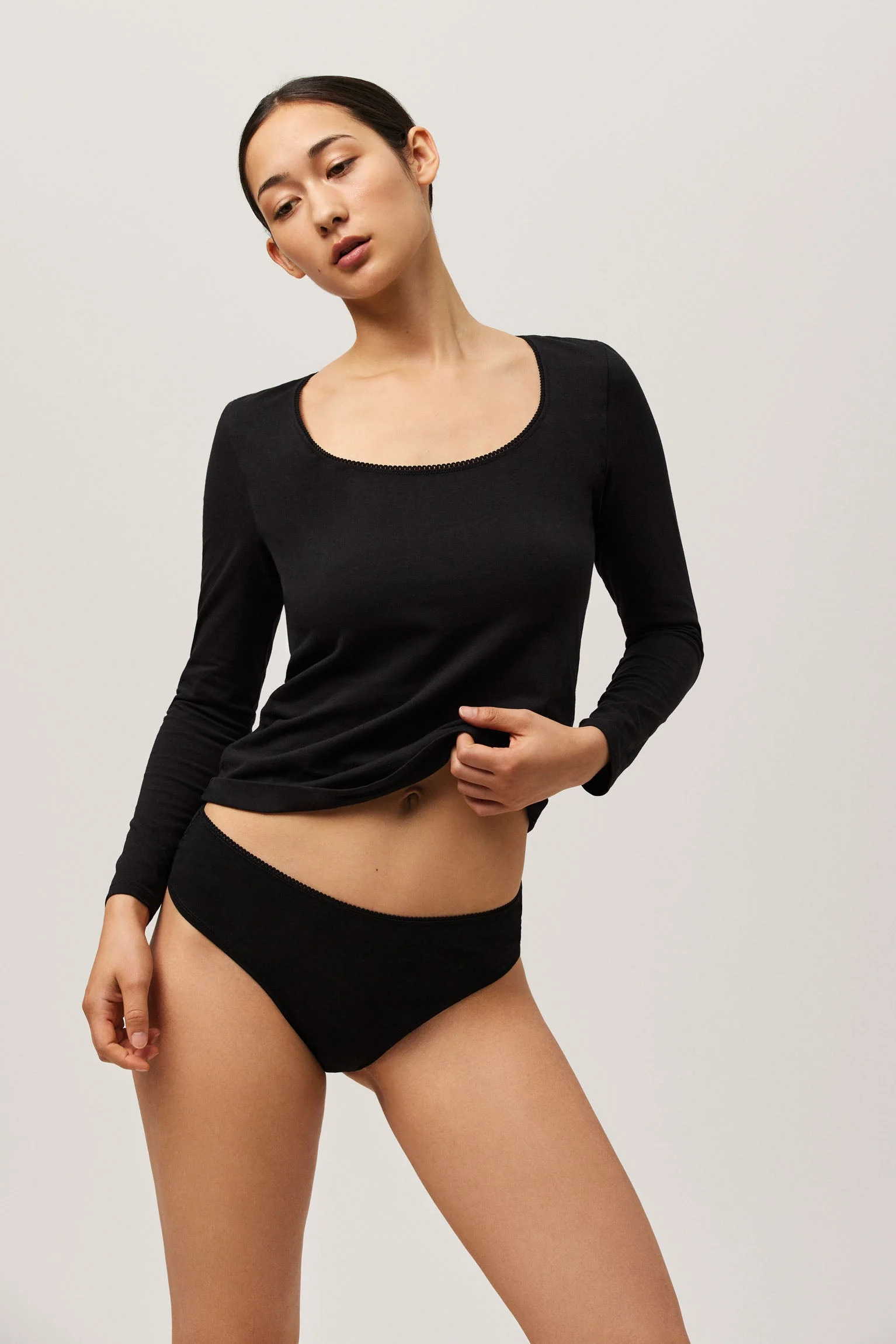 Maillot de corps à manches longues et encolure ronde avec élastique décoratif.