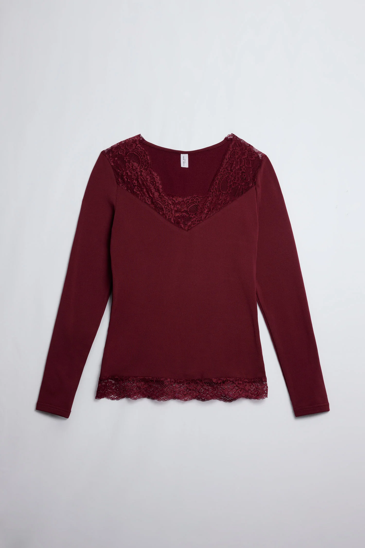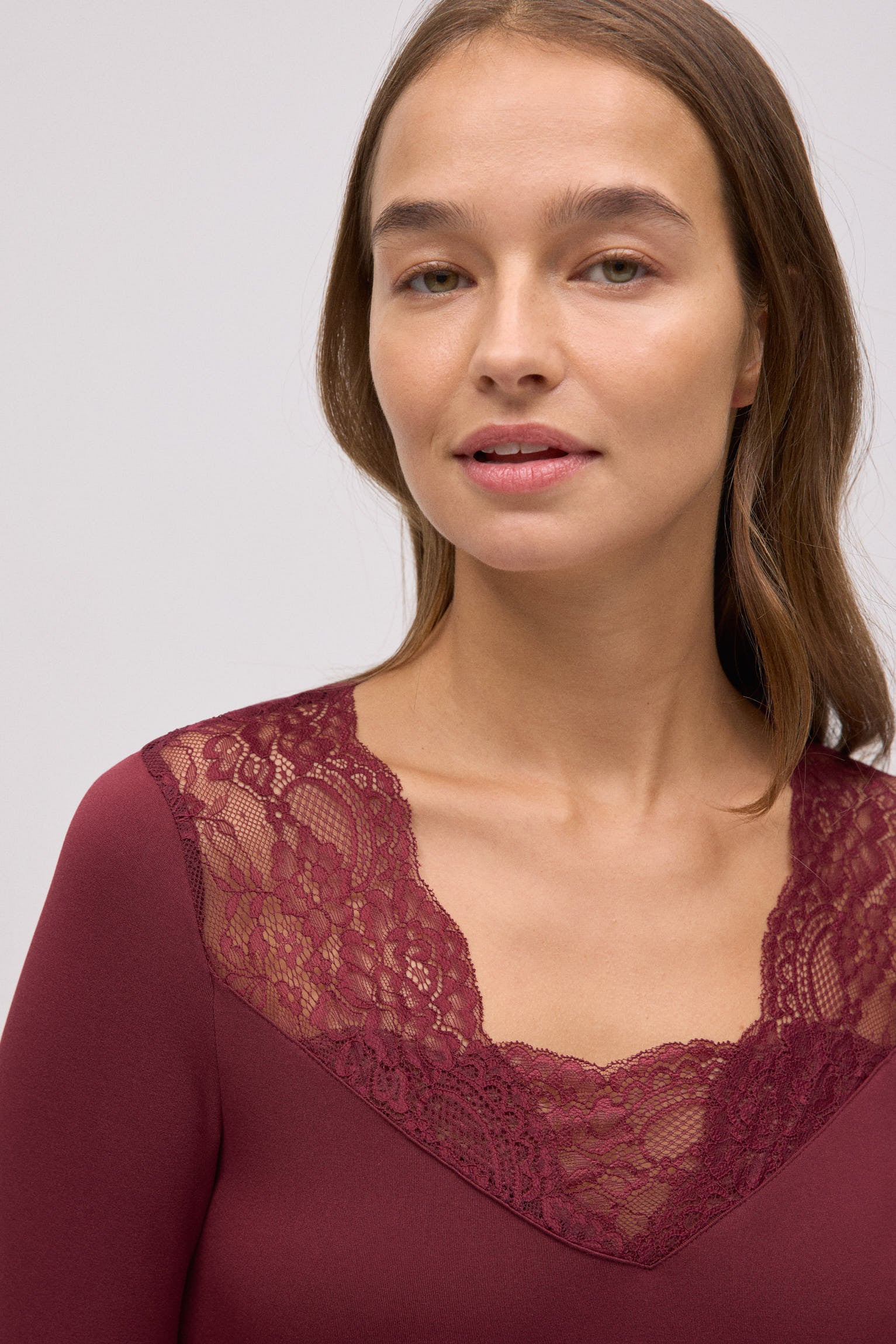 Haut thermique à manches longues pour femme avec un élégant col en V bordé de dentelle pour une touche féminine et sophistiquée. Confectionné en tissu thermique doux avec un intérieur en peluche, il est idéal pour vous tenir confortablement au chaud par temps froid. Son design uni et ses détails en dentelle à l’ourlet en font un vêtement polyvalent et original, parfait en sous-vêtement ou pour des looks hivernaux décontractés.