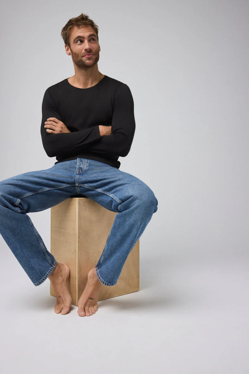 - Col rond classique et manches longues : pour une plus grande couverture et un plus grand confort.